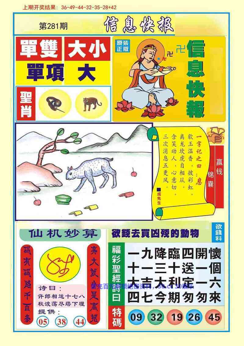 280期九肖〖虎龙羊兔蛇牛狗马〗开:鼠42准